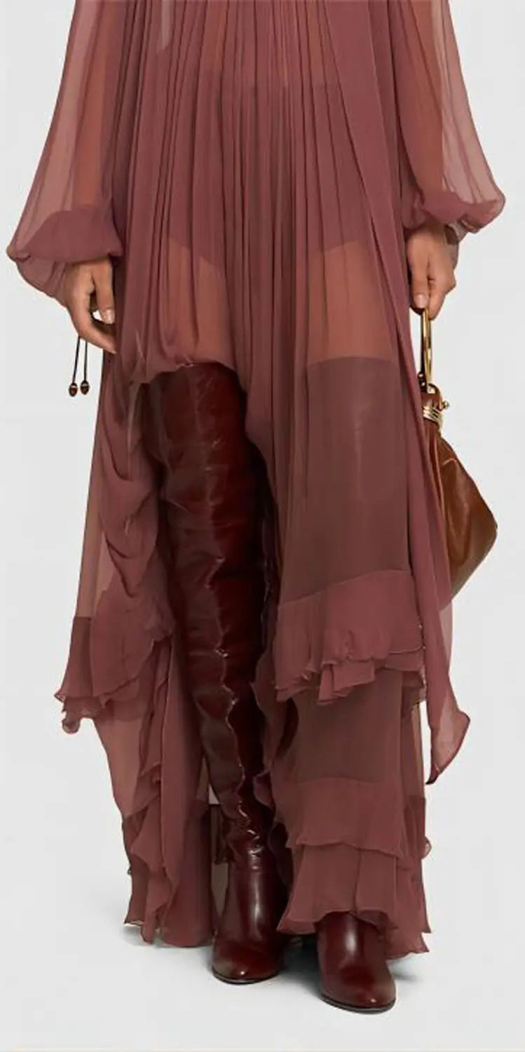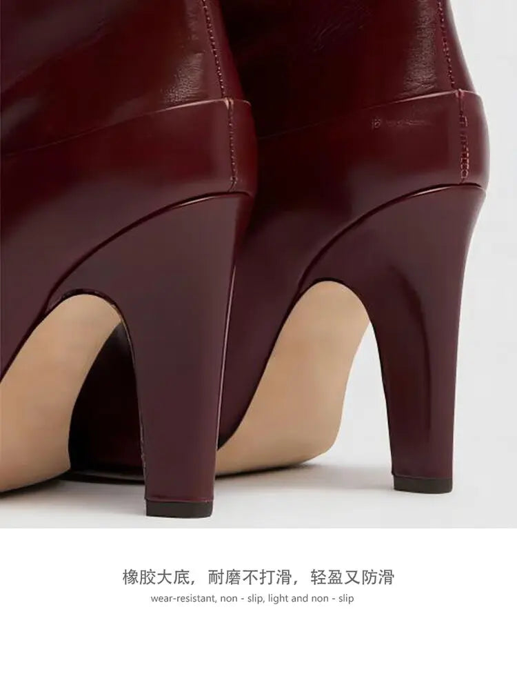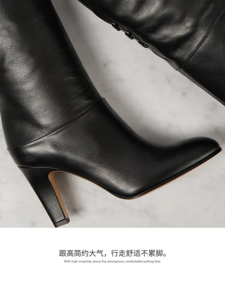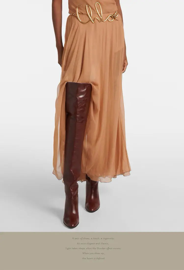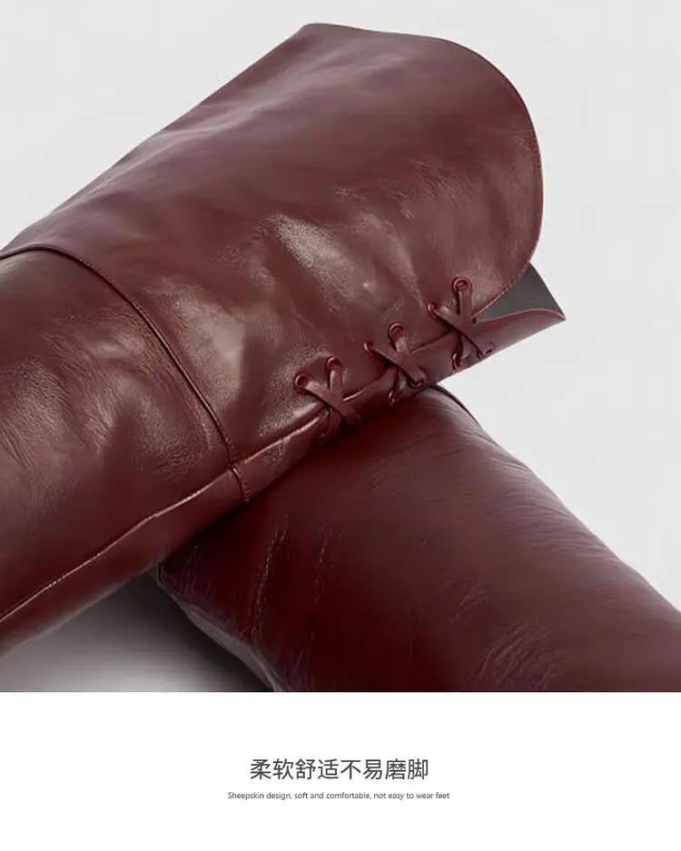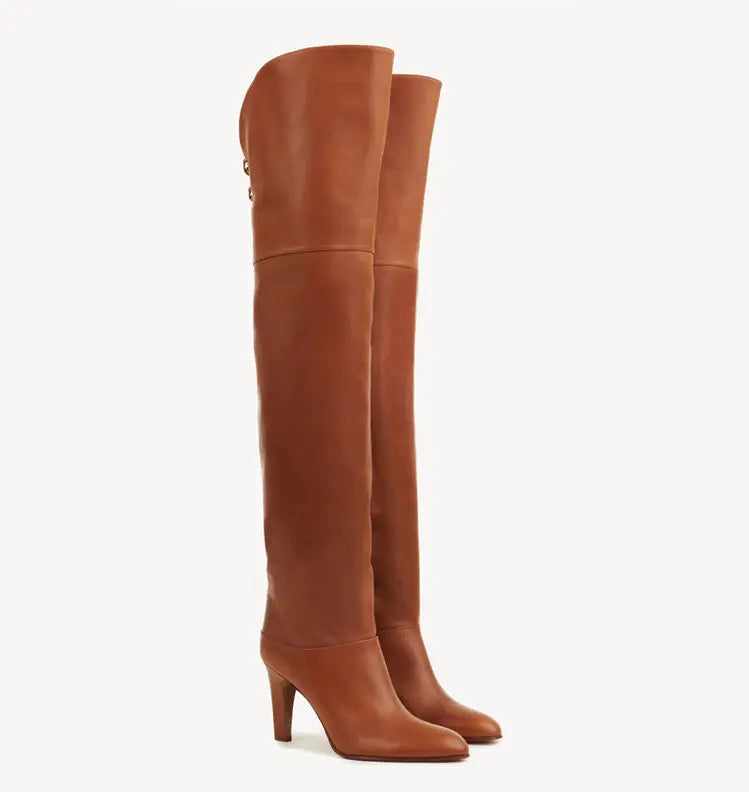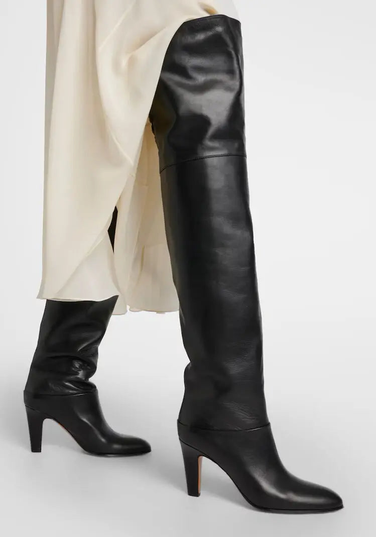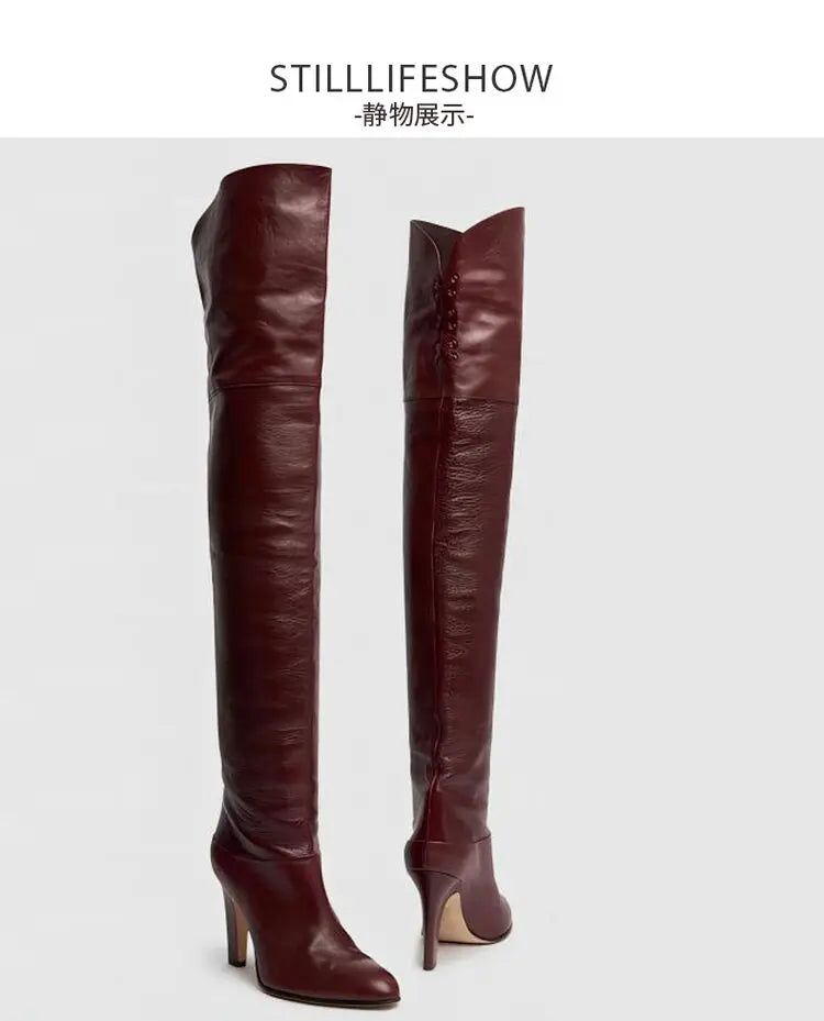 Stivale in pelle biovina con tacco sopra al ginocchio