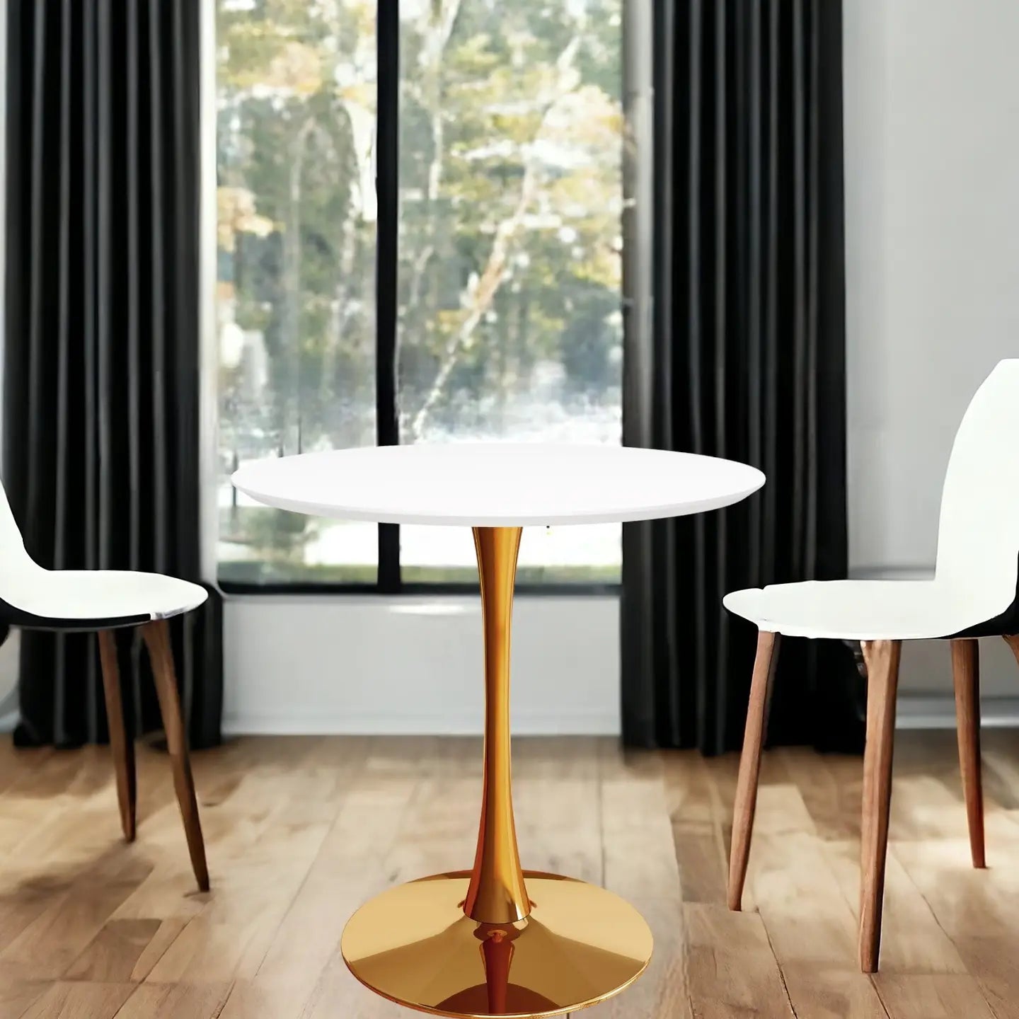 Elegante e super robusto, il tavolo da pranzo in metallo bianco e oro da 36" è un tavolo da pranzo dall'aspetto straordinario, progettato per diventare il fulcro della tua casa. Un telaio in metallo dorato è completato da un piano in legno artificiale bianco che è l'epitome della qualità costruttiva e del design. La finitura bicolore ne aumenta l'attrattiva. Una finitura lucida e brillante conferisce a questo tavolo un tocco moderno e contemporaneo. Questo tavolo presenta una base a piedistallo che aggiunge profondità e interesse al tuo spazio. Può ospitare fino a 4 familiari e amici intorno al tuo nuovo tavolo da pranzo. Questo tavolo è la risposta robusta, affidabile ed elegante alle esigenze della tua sala da pranzo. 29" H x 36" L x 36" P. Presenta una finitura lucida e brillante. Presenta una costruzione di alta qualità e una superficie superiore realizzata in legno artificiale. Il tavolo rotondo è utilizzato per una seduta più intima. Piano del tavolo resistente ai graffi. Costruito per durare, costruzione robusta da un mix di legno MDF e metallo. Ospita comodamente fino a 4 persone.
